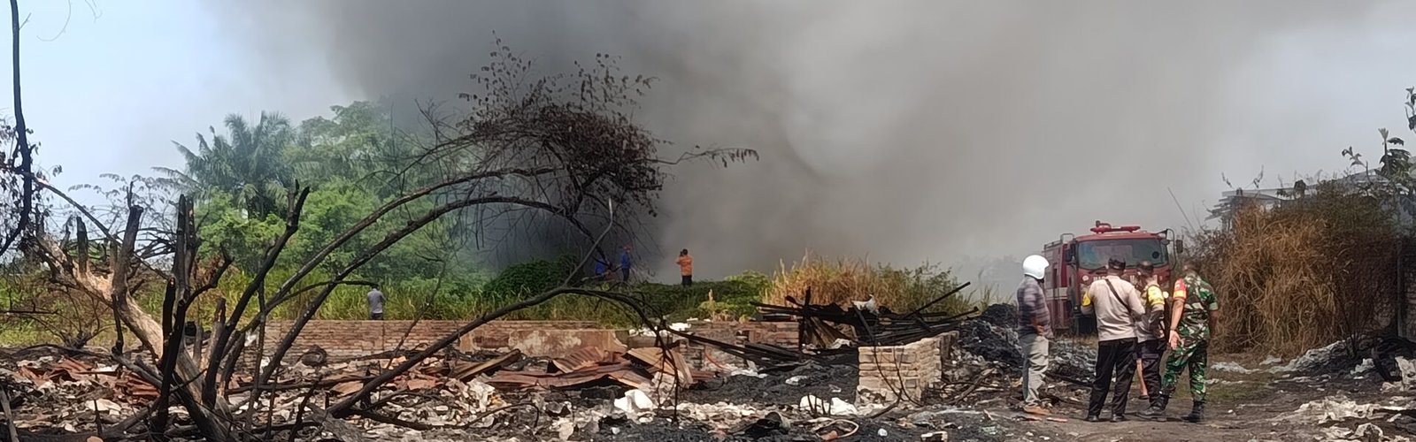 Peristiwa tersebut terjadi sekitar pukul 13.00 WIB dan menyebabkan kepulan asap hitam pekat membumbung tinggi, sehingga menarik perhatian warga sekitar.