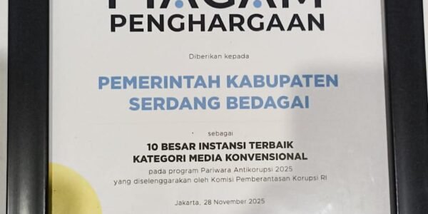 Sergai, Neracapos.com – Pemerintah Kabupaten Serdang Bedagai (Pemkab Sergai) kembali mencatatkan prestasi membanggakan di tingkat nasional dengan meraih 10 besar nominasi Kategori Media Konvensional pada ajang Pariwara Antikorupsi 2025 yang diselenggarakan oleh Komisi Pemberantasan Korupsi. Penghargaan tersebut diterima pada malam…